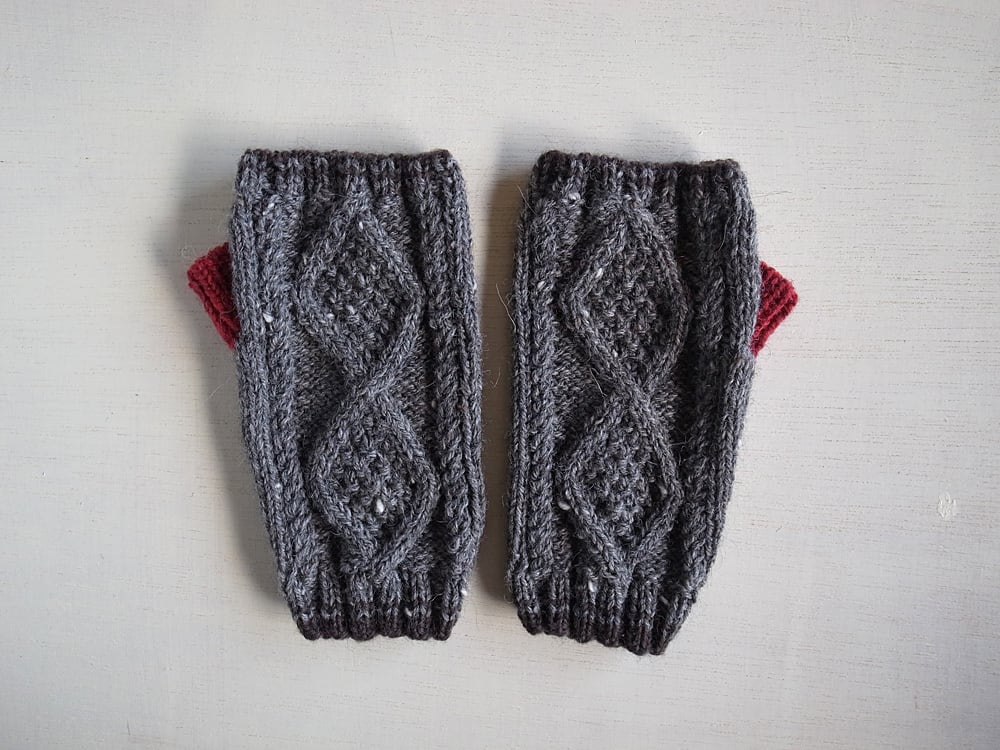 ダイヤモンド模様のツイードミトン・ダークグレー×レッド
