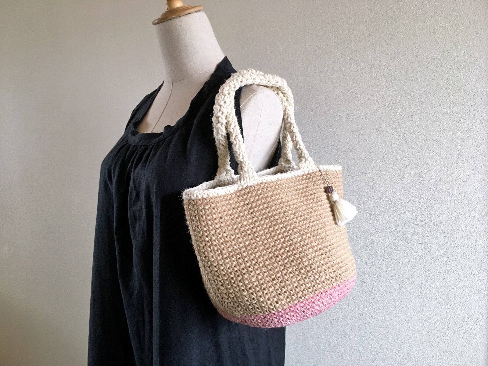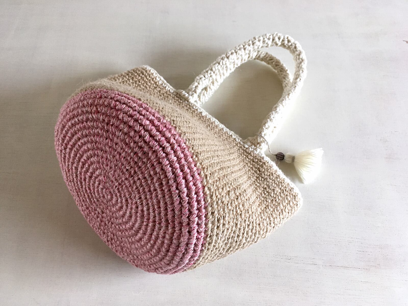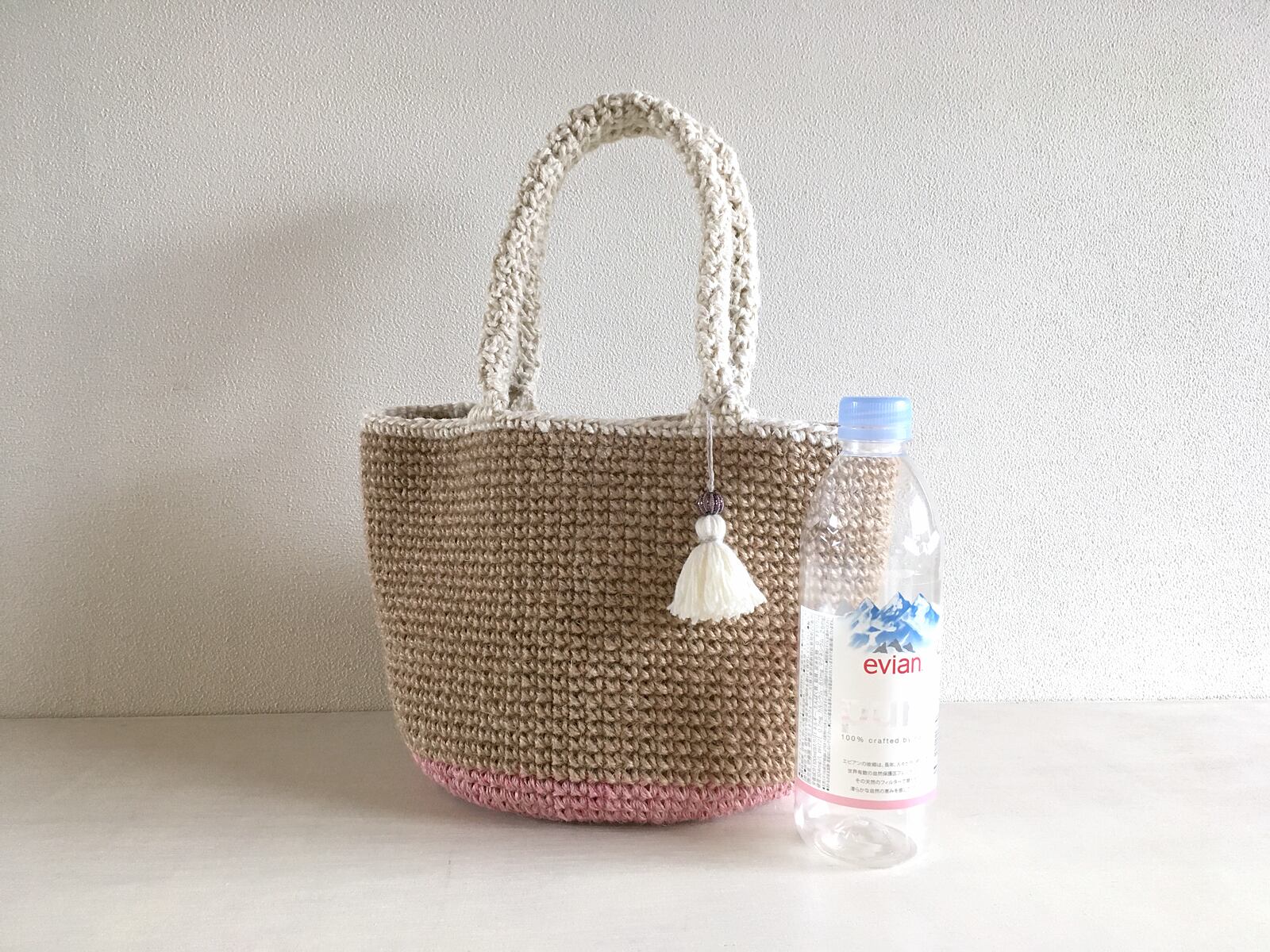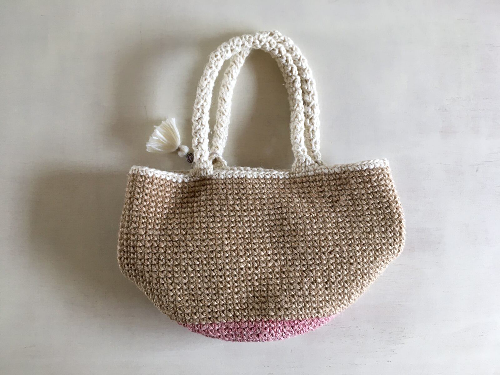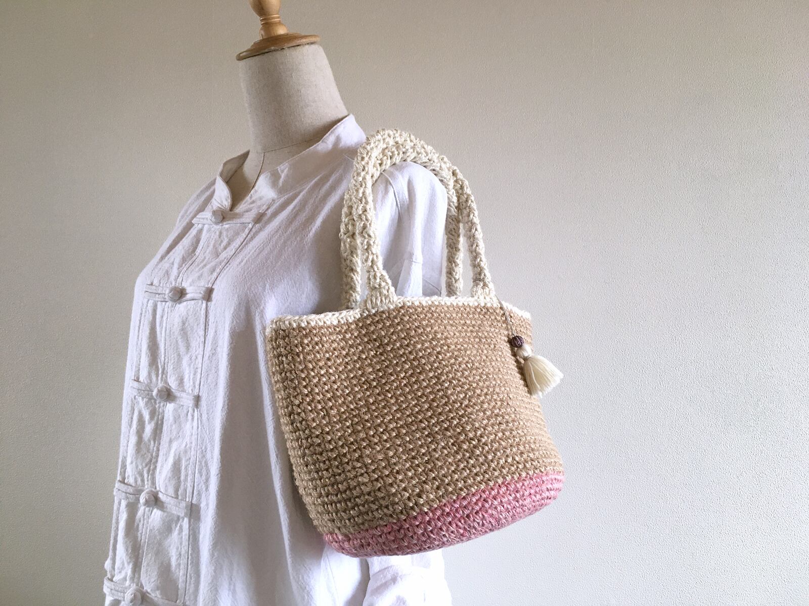 キュートすぎないチェルシーピンクとオフホワイトの持ち手、夏の空に映えるバッグになりました。